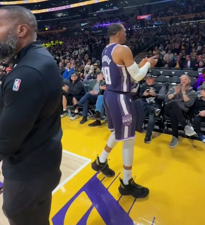 此役37歲的老威少重返斯臺普斯中心,威少的生涯下滑就是從湖人開始,所以他對湖人有別樣的情感,開場雷迪克防他的策略也是沉退,威少弱側(cè)底角兩個三分出手命中一個,首節(jié)威少7分鐘,5中2拿到5分3籃板1助攻1搶斷。