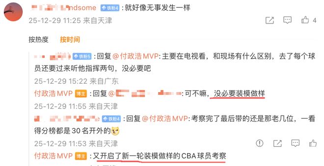 付政浩在和網(wǎng)友互動(dòng)時(shí)直言:“又開啟了新一輪裝模做樣的CBA球員考察”,并且一針見血指出:“郭導(dǎo)已經(jīng)黔驢技窮,早點(diǎn)下課,回到CBA找個(gè)中下游球隊(duì)好好抓訓(xùn)練抓防守繼續(xù)當(dāng)名帥吧。別再禍禍國(guó)家隊(duì)了,國(guó)家隊(duì)連續(xù)輸給韓國(guó),這是在砸所有中國(guó)籃球人的飯碗,一舉把中國(guó)籃球的商業(yè)價(jià)值全干崩了。放過(guò)中國(guó)籃球吧。”
