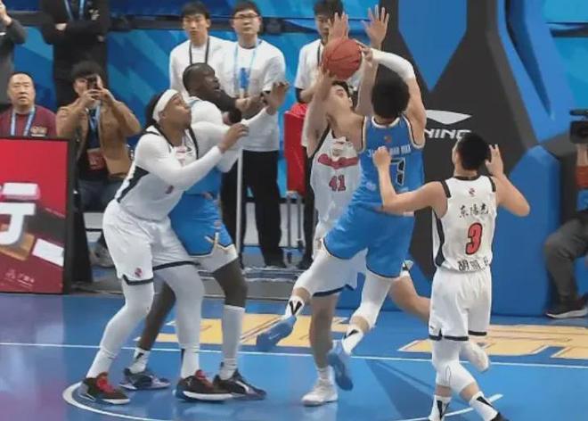 那是比賽第二節(jié)的一個回合,當(dāng)時薩姆納跟周琦出現(xiàn)了一次對抗,周琦失了重心,摔倒碰到徐杰。
