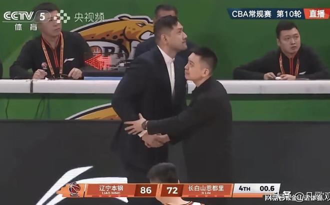 86-72,當比賽曲終哨響,楊鳴徑直走向中場,與迎面走來的吉林主帥鐘誠握手,兩人沒有語言交流,鐘誠表情淡定,楊鳴則下意識的,拍了拍鐘誠的手臂……