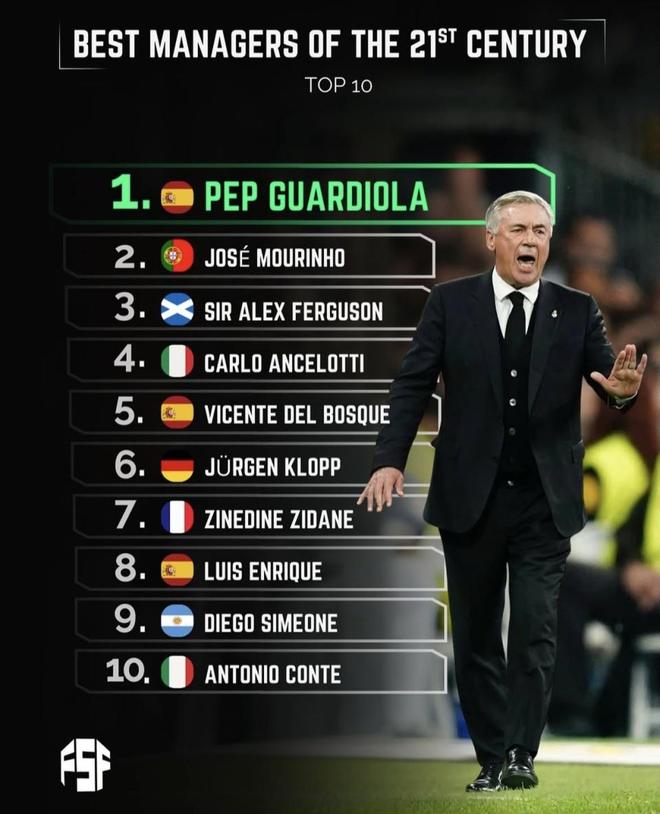 這份《21世紀最佳主教練TOP10》里,最“站得住”的部分其實很清晰:瓜迪奧拉、安切洛蒂、穆里尼奧放在最前面,屬于不管你偏愛哪種標準,都很難把他們排出第一梯隊的那種人。瓜迪奧拉代表的是體系與統(tǒng)治力,安切洛蒂代表的是歐冠級別的穩(wěn)定兌現(xiàn),穆里尼奧則是“在不同聯(lián)賽、用不同方式都能把冠軍拎起來”的那條線。克洛普、齊達內(nèi)、西蒙尼進前10也正常:一個把俱樂部帶到長期高峰,一個歐冠三連這塊牌子太硬,一個把同一支球隊打磨成了長期強隊。
