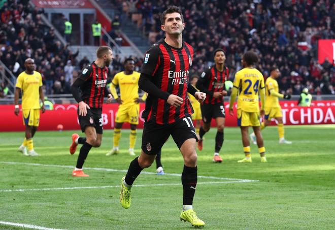 意甲第17輪主場(chǎng)迎戰(zhàn)維羅納的比賽中,普利希奇的進(jìn)球?yàn)槊滋m首開(kāi)記錄。
