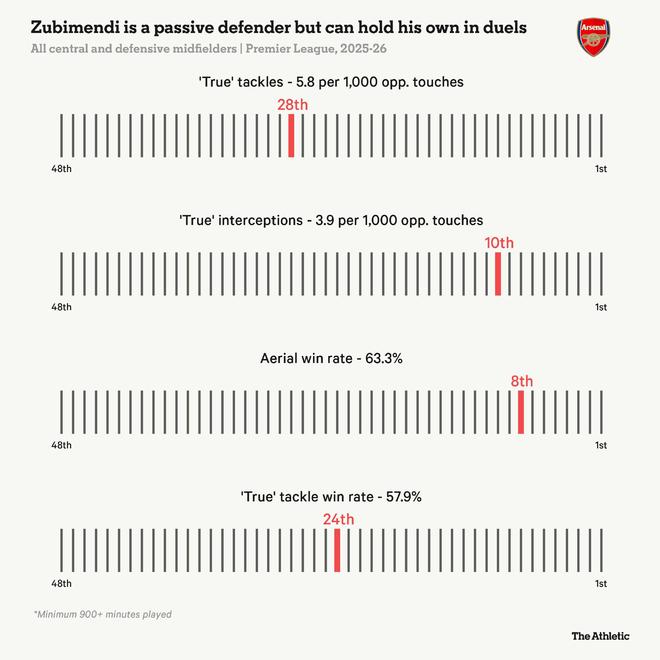相反,蘇比門迪確保自己的站位正確以進(jìn)行反壓迫,并且經(jīng)常能及時(shí)切斷對(duì)手的傳球線路,這讓他在“真實(shí)攔截”榜單上排名第10位顯得不那么令人意外。